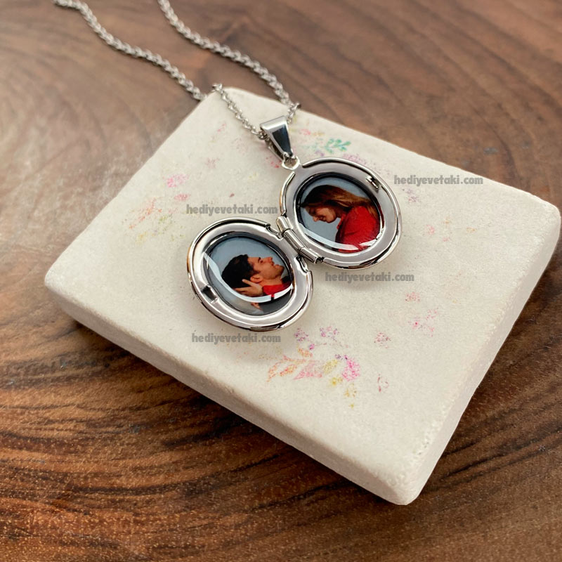 Bu özel kolyenin en önemli özelliği, kapağının yana doğru açılabilir olması ve iç kısmında iki adet fotoğraf alanı bulunmasıdır. Sevdiklerinizi her an yanınızda taşımak isteyenler için tasarlanan bu içi açılan yapı, kolyeyi sadece bir aksesuar değil aynı zamanda anlamlı bir hatıra haline getirir. Çocuğunuzun, sevgilinizin, eşinizin veya ailenizin fotoğraflarını yerleştirerek tamamen size özel bir model oluşturabilirsiniz.