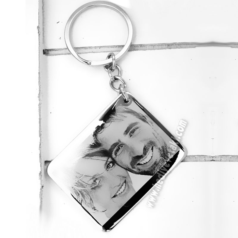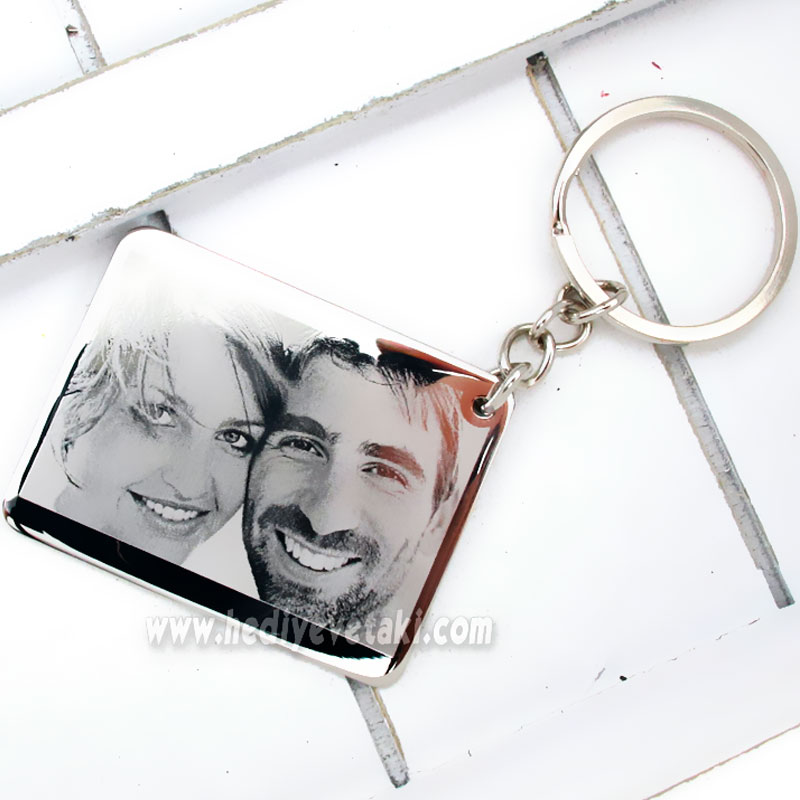 Her kişiye özel resimli anahtarlık, lazer kazıma tekniğiyle üretilir.